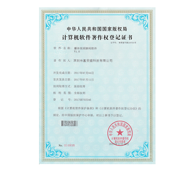 媒體視屏解碼軟件認證書