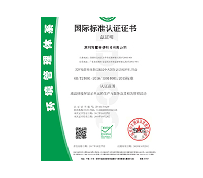 IS014001質量管理體系認證書